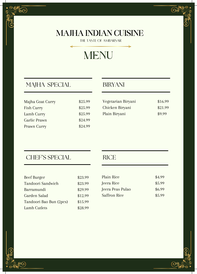 Welcome to Majha Indian Cuisine, nestled in Redcliffe, WA, where the essence of authentic Indian flavors comes alive. This delightful eatery promises a culinary journey like no other, with a menu that showcases vibrant spices and traditional recipes. Customers rave about the tender Chicken Biryani and the celebrated Shahi Paneer, highlighting their rich taste and generous portions. The complementary papadum and chutneys add an extra layer of flavor, making each visit memorable.